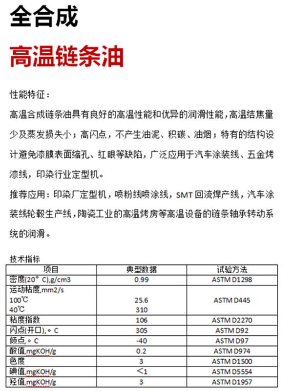 廈門威馬工貿(mào)有限公司位于美麗的花園城市-廈門市同安區(qū),公司專營(yíng)合成高溫油脂系列產(chǎn)品。產(chǎn)品分為:高溫鏈條油、高溫潤(rùn)滑脂、高低溫潤(rùn)滑脂等系列油品。廣泛應(yīng)用于:定型機(jī)、噴涂/噴粉、巖棉等高溫潤(rùn)滑設(shè)備,本品無(wú)煙,無(wú)殘?jiān)瑢儆谌铣筛邷赜拖盗校杉臉釉囉茫L(zhǎng)期服務(wù)全國(guó)客戶。